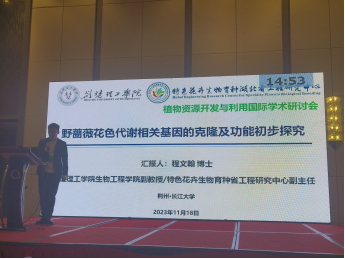 11月17日-19日,“植物资源开发与利用国际学术研讨会”在长江大学举行。我院黄仁华教授、特色花卉生物育种湖北省工程研究中心副主任程文翰博士应邀参加了会议,程文翰博士作了题为“野蔷薇花色代谢相关基因的克隆和功能初步探究”的报告,并介绍了花卉工程中心的主要工作成绩。