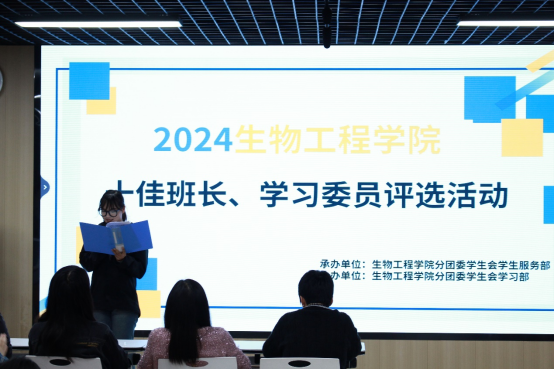 通讯员(邹龙奕霏)为充分发挥学生干部的模范引领作用,生物工程学院于2024年4月7日星期日在教学楼B4305举行“十佳班长、十佳学习委员”评选活动。学工办主任郝淑颖老师,辅导员王海芸老师、余海鹏老师、刘婷婷老师出席了本次活动,活动由薛梦瑶同学主持。