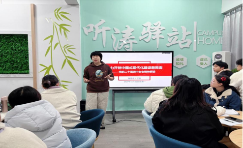 (通讯员:刘君杰)为深入学习贯彻党的二十届四中全会精神,推进党的创新理论入脑入心,12月22日,qy球友会千亿官网学生党支部在听涛驿站组织开展了全会精神专题学习活动。支部师生代表共同参与,围绕“奋力开创中国式现代化建设新局面”这一主题,开展深入学习与交流,现场学习氛围庄重而热烈。